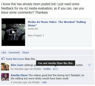 To complete the evaluation of our created media texts we used Web 2.0. we used a mix up of Social networking websites such as Youtube, Facebook & Twitter. These social networking websites were used to share our texts and receive Constructive criticism from people who view our video. We used the website Blogger to show evidence of our work and progress. This was a self created blog with our own input's of what we thought and found out. This was so that we could shows our progress as we designed or processed different media texts.